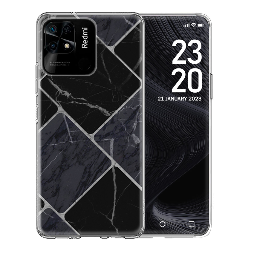 Θήκη Back Cover Xiaomi Redmi 10C Marble Black Squares